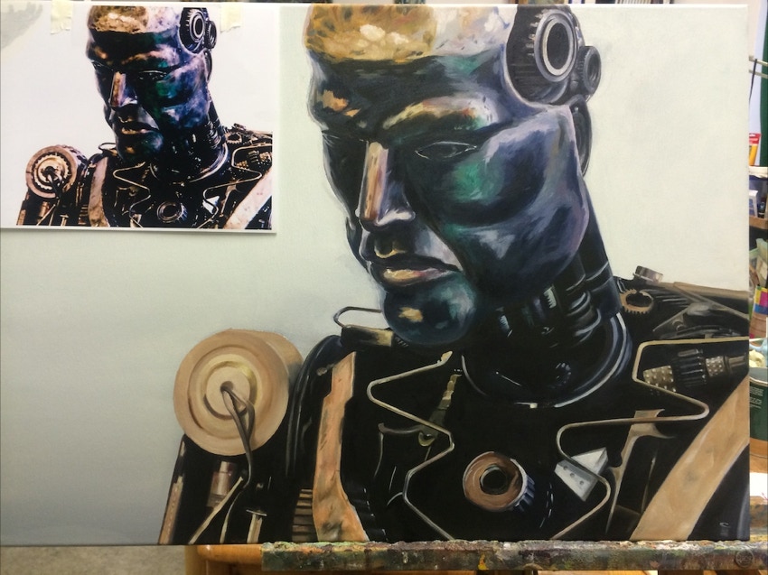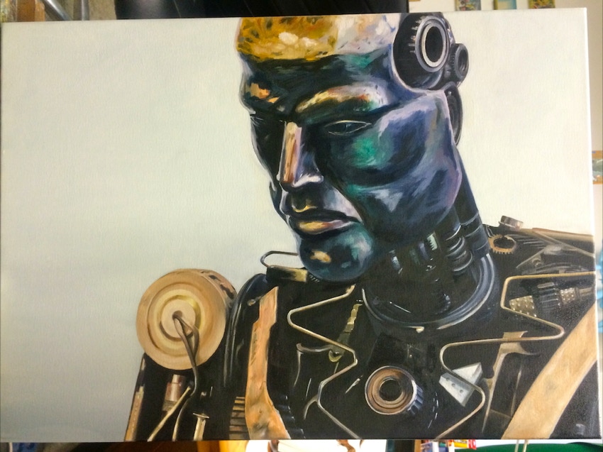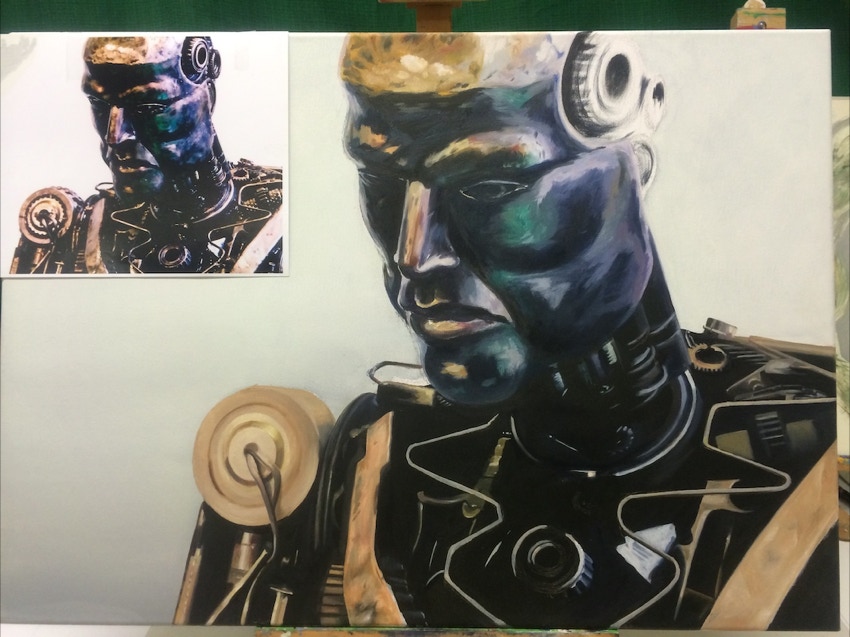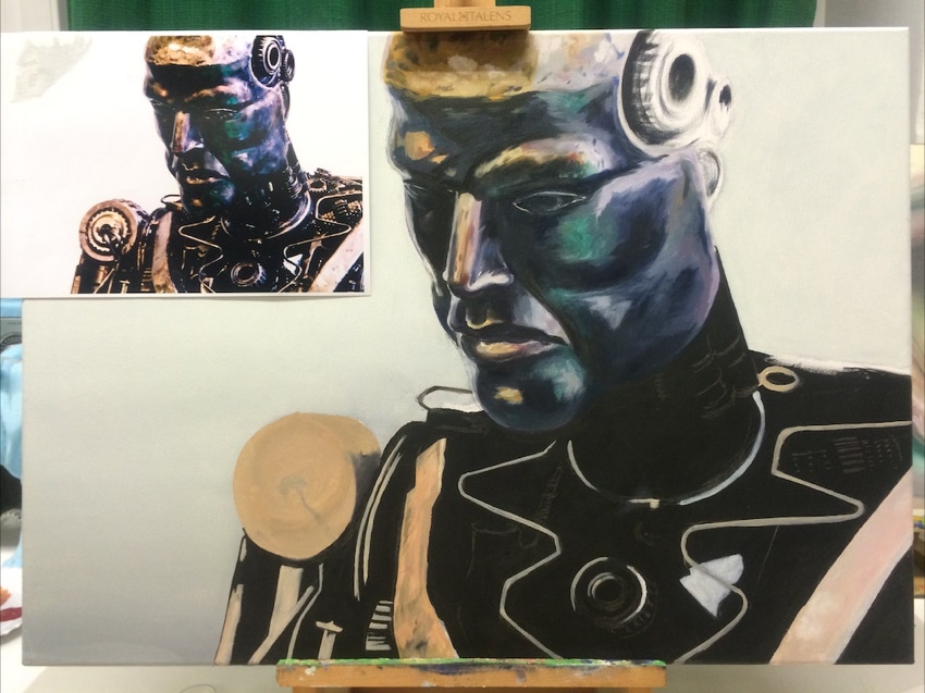 Da sich im laufe der Zeit ein klein wenig Zeichenpraxis bei mir angesammelt hat, lies ich mich von einem meiner besten Freunde dazu überreden, nach der Öl-Farbe zu greifen. An dieser Stelle ein großes Dankeschön an einen sehr guten Freund und Mentor Jörg Mazur, der mir einen Schubs in diese Richtung gab und mir immer wieder neue interessante Wege und Inspirationen zeigt.
